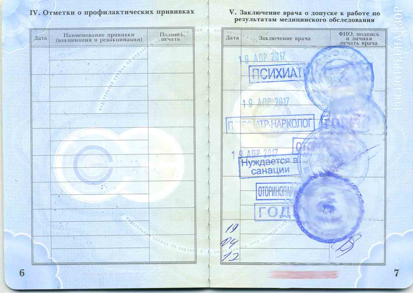 - фото 30×40 мм, если медкнижка новая.