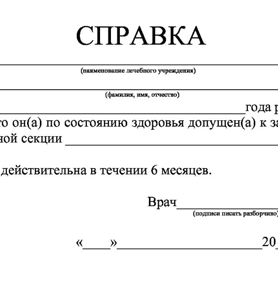 Если никаких проблем со здоровьем выявлено не будет, врач выпишет справкe для спортивной секции ребенку, где обязательно должна быть подпись врача, а также печати медицинского учреждения. Если вам срочно нужна справка о здоровье для спортивной секции, то вы можете ее получить в специализированных компаниях, как наша.