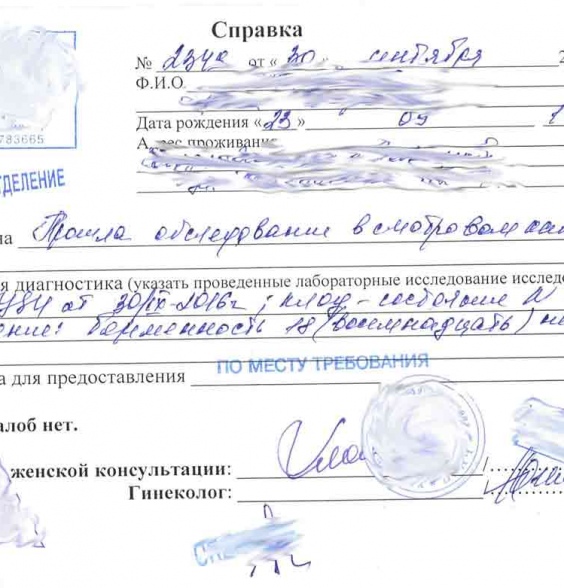 Для этого необходимо попасть на прием к акушеру-гинекологу. Для этого можно обратиться как в государственную, так и в частную поликлинику. В частной поликлинике будет намного дороже, однако и качество обслуживания - выше. Но даже в государственной поликлинике можно совершенно спокойно и бесплатно получить необходимый документ. Для этого достаточно обратиться в регистратуру, имея при себе паспорт и полис и записаться на прием к врачу. После осмотра будет выдан соответствующий документ.