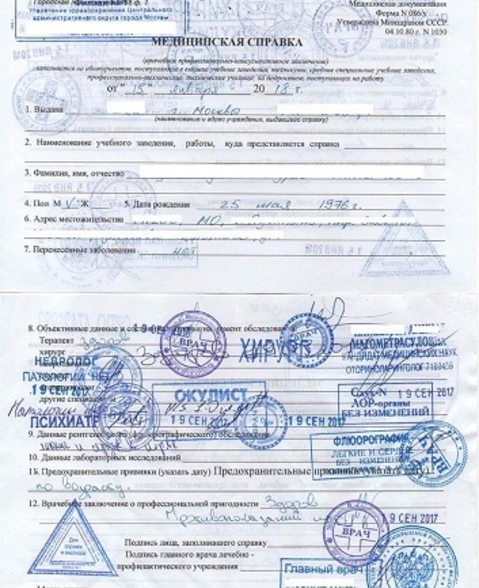 Данный список может быть расширен на основании истории болезни. Также в обязательном порядке нужно будет пройти ЭКГ и флюорографию, сдать общие лабораторные анализы крови, кала и мочи. Поскольку результатов анализов придется ждать около 7 дней, то вся процедура получения меддокумента может затянуться на несколько недель. Также нужно учитывать тот факт, что срок действия документа составляет 6 месяцев, после чего он становится недействительным и заново придется проходить всех врачей.